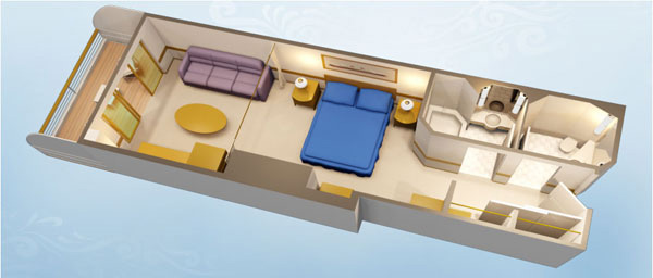 Op de schepen van Disney Cruise Line verblijf je in luxe hutten. Deze accommodaties zijn ontworpen met families in het achterhoofd en voorzien van diverse innovaties die je verzekeren van het hoogst mogelijke comfort en ontspanning voor gasten van alle leeftijden. De balkonhut met balkon en uitzicht is beschikbaar in een deluxe uitvoering.