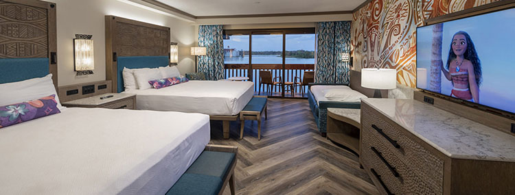 Alle kamers worden compleet vernieuwd en krijgen een licht Moana thema met o.a. nieuwe bedden, meubels, vloer en decoratie. Het kleurenpalet is geïnspireerd op eilanden uit de Pacific Ocean met details uit Moana. In de badkamer zijn de tegels en de vloeren gethematiseerd naar de zandvloer in de oceaan.